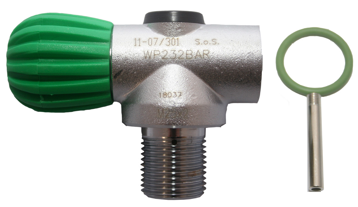 230 Bar NITROX Rebreather Ventil für Bailout Flaschen mit Standard M25x2 Gewinde passend für alle gängigen Stahl oder ALU O2 Flaschen.
