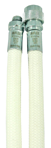 Die Miflex Xtreme Schläuche zeichnen sich durch ein Nylon-Gewebe aus, das einen enormen Schutz vor Abrieb bietet und zudem auch UV-Strahlung widersteht, was somit nochmals die Lebensdauer der Flexchläuche von Miflex erhöht. Im Gegensatz zu herkömmlichen Gummi Schläuchen wird das Miflex Gewebe nicht einfach über die Schlauchenden geschoben sondern um den Innenschlauch gewebt und mit Edelstahlhülsen verpresst.