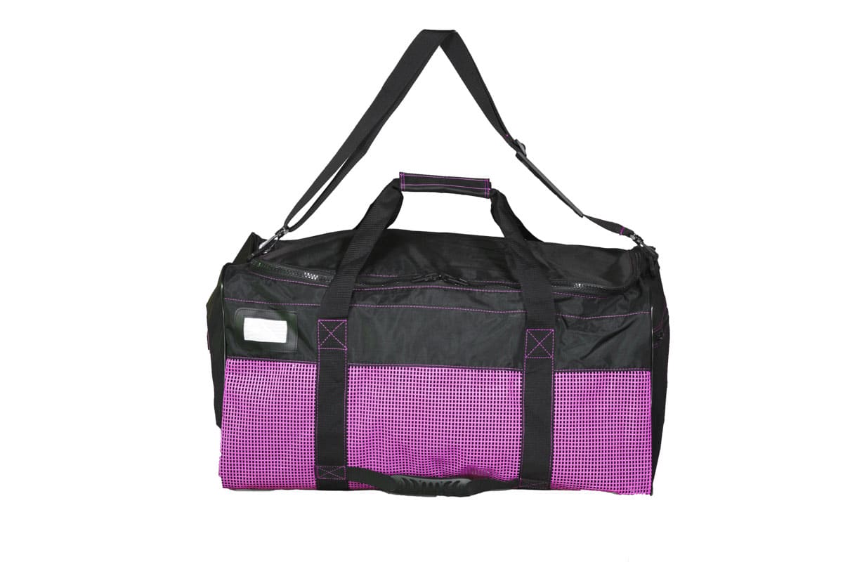 Die Tauchausrüstung zusammen zu transportiteren ist ein Muss, egal ob Sie auf einem Tauchboot sind oder diese auf der Rückseite Ihres PKW liegt. Die OMS-Netztasche in Pink ist aus einem robusten Nylon gefertigt, verkleidet mit einem stabilem Kunststoff Gitter. Dadurch kann man problemlos auch nasse Ausrüstung über längere Zeit mit der Tasche transportieren. Die Nylongurte welche vollständig um die Tasche geführt sind, sorgen für zusätzliche Festigkeit. Die Rückseite ist in den auffäligen OMS Farben pink und schwarz gefertigt.
